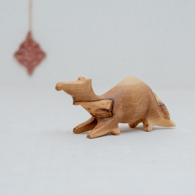 前足を折り曲げて座るらくだの置物です。 適度な重さで、ペーパーウェイトの役割を果たしつつデスクの空気を朗らかにしてくれます。 玄関やトイレに置いても可愛い、らくだ好きには堪らない逸品です。 ◆素材 オリーブの剪定材 ◆サイズ 約11cm / 40g ====== ◆商品特性・返品について 商品は一点一点手作業で作られており、自然素材のため個体差がございます。また、スクリーンでご覧いただくお色味と実際の風合いが異なる場合がございます。予めご理解のうえご購入いただきますよう、お願い致します。 欠陥以外に、お客様都合による返品交換には応じられませんので、ご了承くださいませ。 ◆ショッピングガイド https://kakehash.thebase.in/p/00002 ====== ◆「オリーブの木」について 当店の生産地パレスチナでは紀元前からオリーブが栽培されています(樹齢数千年の古木も)。木は5-7年で実を付け始め、30~50年経つと健康な生育を助けるために収穫の後に剪定されます。切った枝や幹は木材業者へ、あるいは直接工房に渡り、工芸品・日用品に生まれ変わります。小さな材も捨てることなく冬場の燃料に利用されています。 ◆作り手「Holy Land Handicrafts Cooperative Society」について 中東で一番古い世界フェアトレード連盟(WFTO)加盟団体です。地域の小さな工房で製品をつくり、事務所でまとめて巡礼客や海外へ販売。約2,000人の暮らしを守っています。拠点はキリスト教徒が多く暮らす、パレスチナ・西岸地区のベツレヘムという町です。 当店は事務所スタッフのアミラさん、バスマさんと直接やり取りをして商品を仕入れています。 ◆なぜパレスチナとフェアトレード? 店主は大学生の時にパレスチナでホームステイをし、人があたたかくて、街並みに歴史が感じられて、食文化が豊かなパレスチナの虜になりました。パレスチナの人達は差別されて追いやられて、文化も否定されながらそこに根を張って暮らしている。だったらうちは「素敵なもの」を通して繋がりをつくろう、とこの地域の手仕事をお届けするお店を始めました。