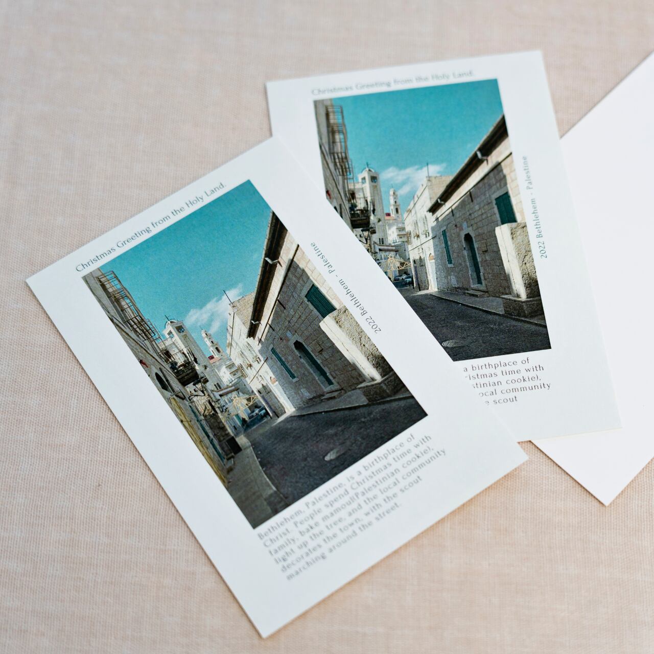 フェアトレードパートナーに聞いた、ベツレヘムでのクリスマスの過ごし方をポストカードに。