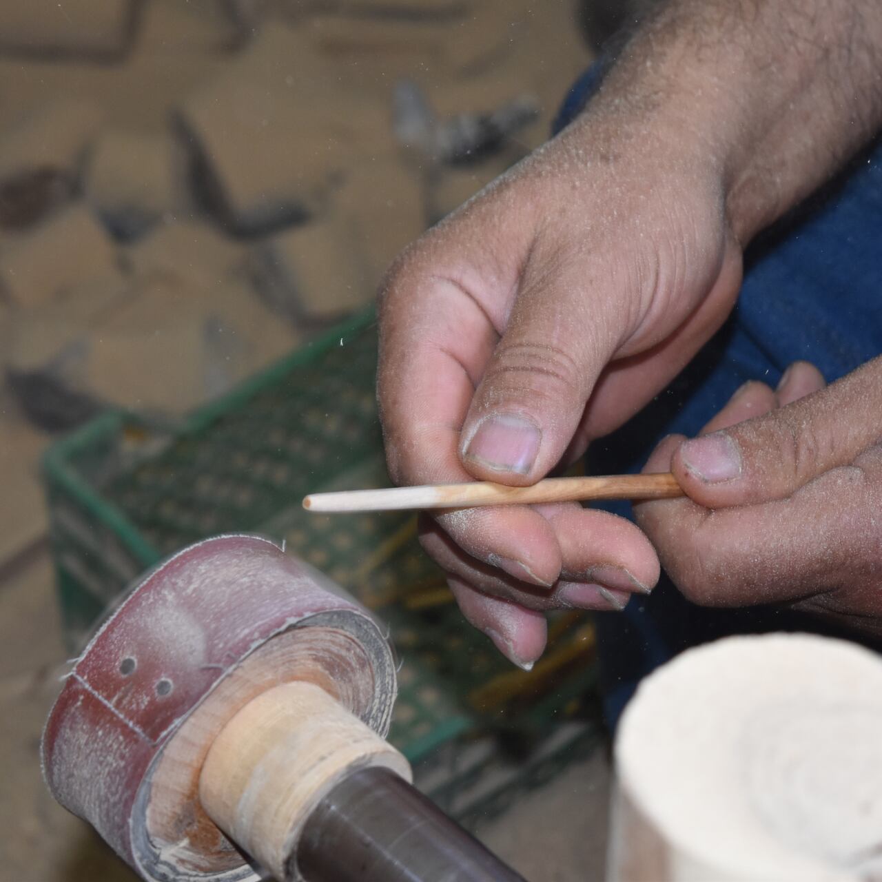当店の生産地のパレスチナ一帯はオリーブの原産地で、その栽培の歴史は紀元前まで遡ります(樹齢数千年の古木も生えています)。現地のオリーブの木は5-7年で実を付け始め、30~50年経つと多くは健康な生育を助けるために収穫の後で剪定されます。切った枝や幹は木材業者、あるいは直接工房に渡り、様々な工芸品・日用品に生まれ変わります。貴重な素材なので、小さな材も加工したり、冬の燃料に利用します。