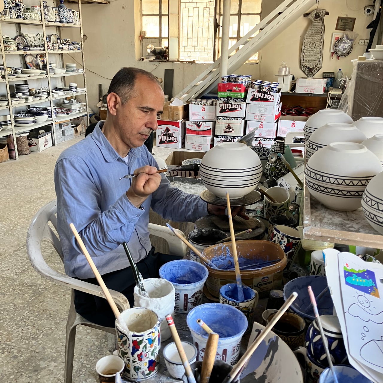 中東で一番古い世界フェアトレード連盟(WFTO)加盟団体です。地域の小さな工房で製品をつくり、事務所でまとめて巡礼客や海外へ販売。約2,000人の暮らしを守っています。拠点はキリスト教徒が多く暮らす、パレスチナ・西岸地区のベツレヘムという町です。