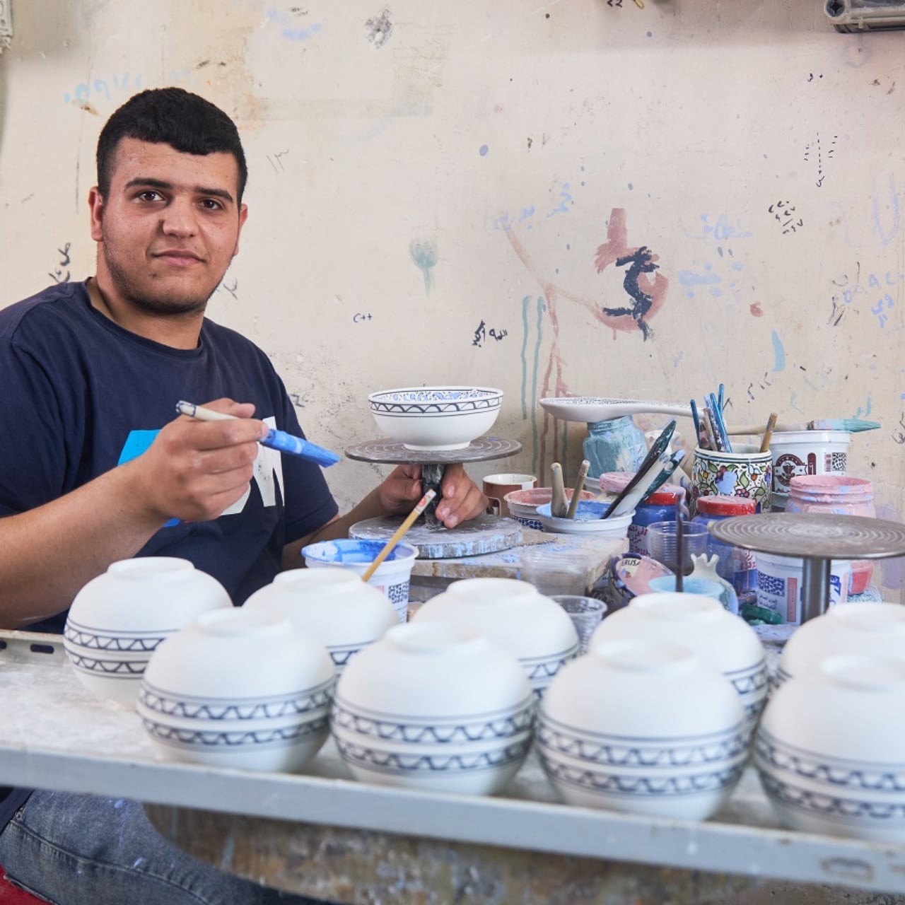 焼き物の町ヘブロン生まれのハンドメイド製インテリアボウル。